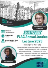 Celebrating the 250th Anniversary of the birth of Daniel O’Connell, Professor Colm O’Cinneide will deliver the FLAC Justice Lecture 2025 alongside a reading by Stephen Rea of excerpts from Daniel O’Connell’s speeches